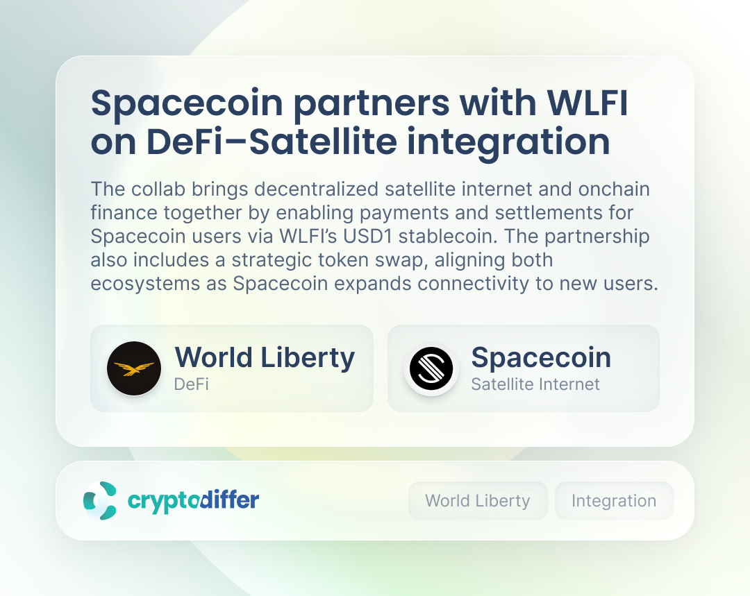 The collab brings satellite internet and onchain finance together by enabling payments and settlements for Spacecoin users via USD1 stablecoin. The partnership includes a strategic token swap, aligning both ecosystems as Spacecoin expands connectivity to new users.