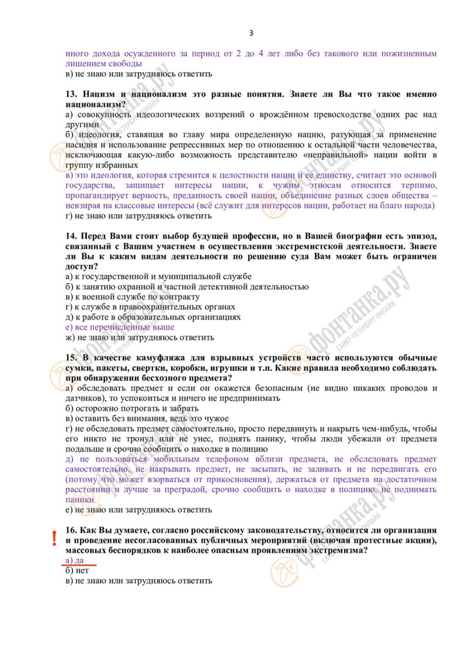В Петербурге силовики на новом уровне взялись за борьбу с мифическим "экстремизмом" среди молодёжи. Уже писали, что питерских учителей призывают доносить в прокуратуру и ЦПЭ на своих учеников, а теперь шерстят и студентов. В частности, проводят анкетирование в некоторых вузах, где задают вопросы с характерным оперским колоритом. Полный список вопросов можно прочить на "Фонтанке" (https://www.fontanka.ru/2020/10/14/69504697).