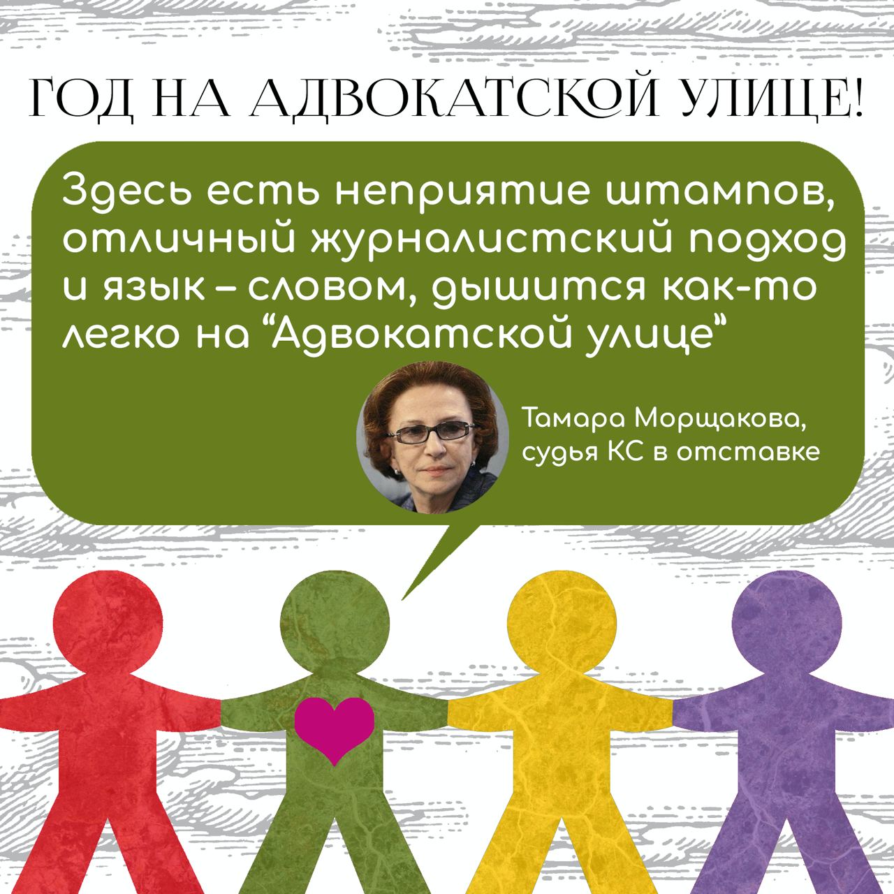 Вынужденный уход Кати из «Адвокатской газеты» во многом был связан с её деятельностью в рамках издания. Но очевидно, что та свобода, с которой Горбунова работала в рамках газеты, была востребована у сообщества – и, по счастью, нашла своё продолжение в «Адвокатской улице».