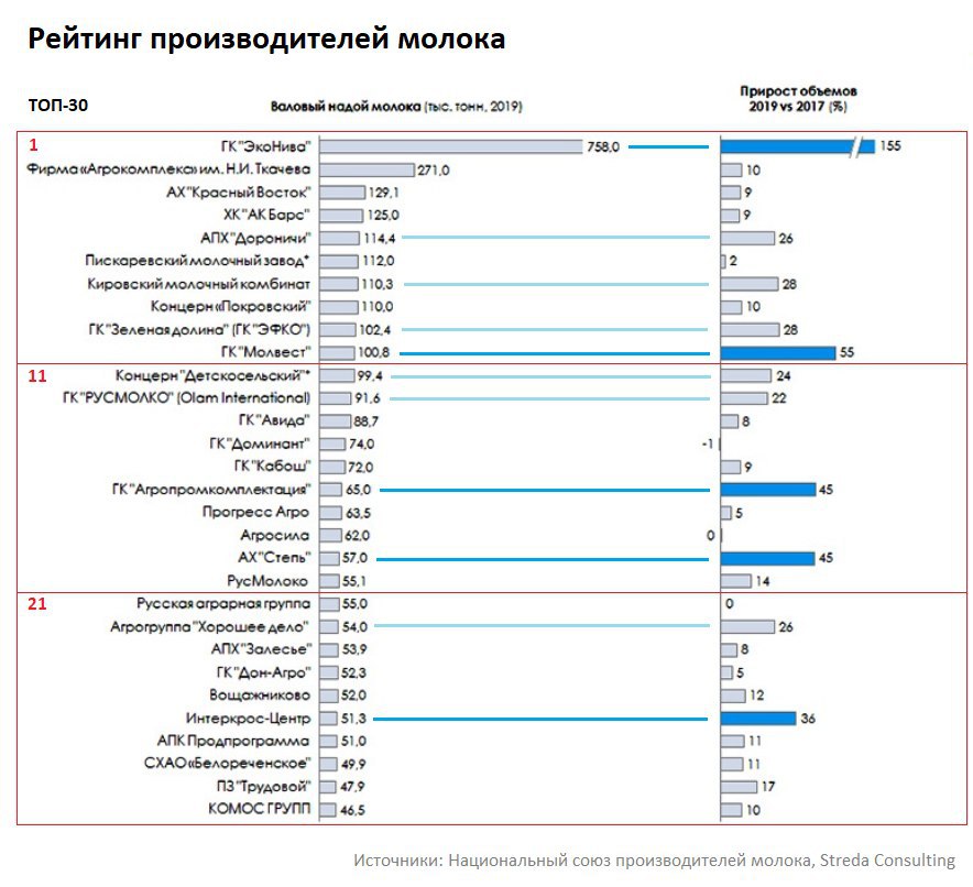 На основе собранных данных составлен рейтинг производителей. Крупнейшие хозяйства: