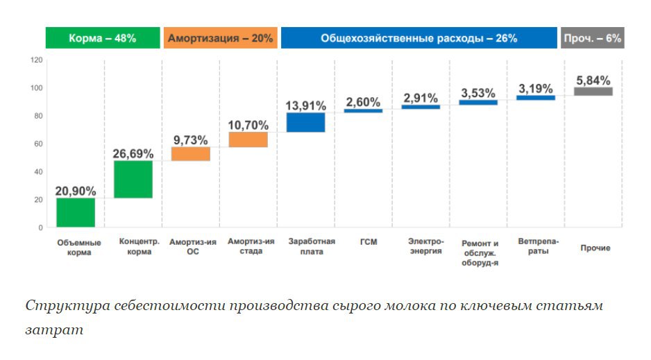Себестоимость производства молока из-за падения рубля увеличилась на 11%. До 50% в структуре себестоимости занимают корма, часть из которых, например, соевые, привязаны к доллару. Соевый шрот подорожал на 7%, премиксы – на 30%. Производители, которые сами заготавливают корма, например, "Залесское молоко", сообщили о росте цен на минеральные удобрения на 20%. Ветпрепараты и медикаменты подорожали на 15-20%.