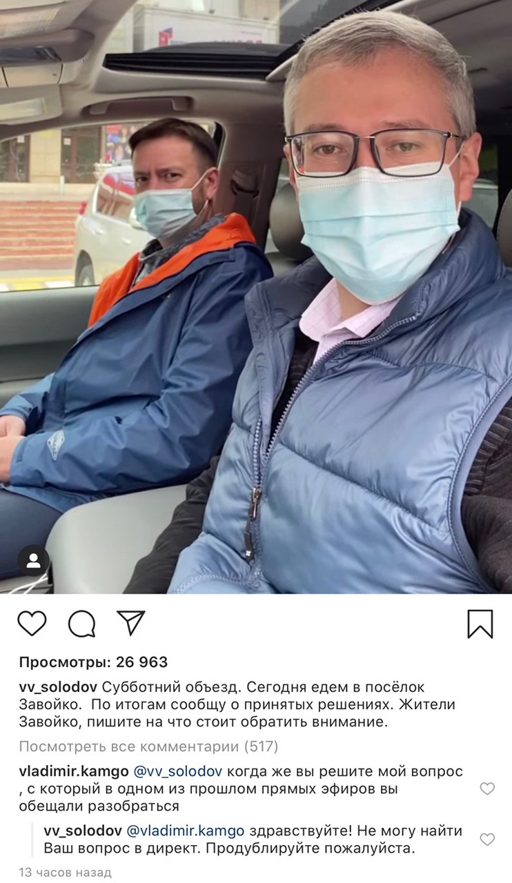 Врио губернатора Камчатского края Владимир Солодов, отправившись в очередной проезд по региону, призвал жителей писать на что ему обратить внимание.