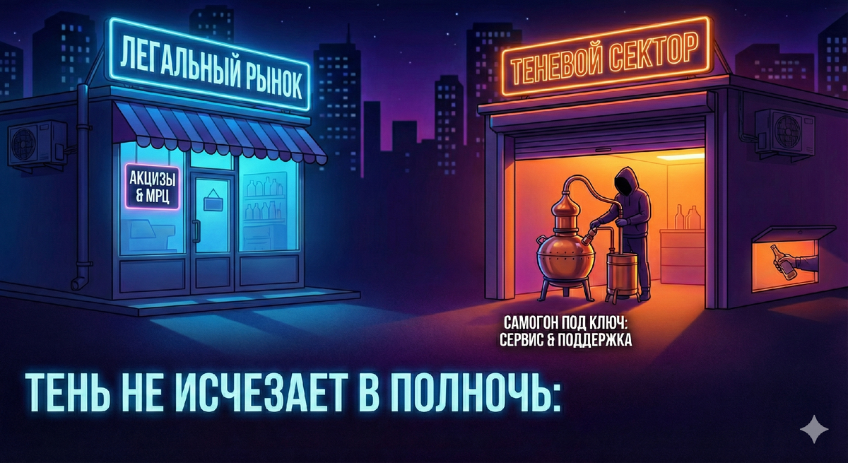 Как ни крути, но экономика первична. Серьезный рост акцизов и МРЦ в последние годы делает легальную водку дорогой для части потребителей. Люди уходят в гаражный сегмент/домашнее производство не из высоких идейных соображений, а просто потому, что там математика их бюджета сходится лучше. Кошелек голосует быстрее, чем лояльность к брендам.