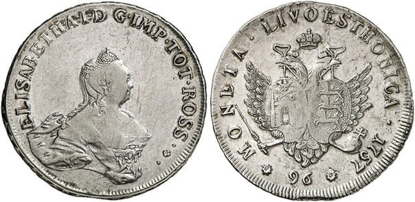 Понимая экономическую и стратегическую роль Прибалтики, власти Российской империи стремились укрепить своё влияние в «Лифляндии» и «Эстляндии» (Латвии и Эстонии) в том числе и финансовыми мерами. Так царица Елизавета Петровна в 1756 году утвердила для этого региона особую монету — по содержанию серебра равную европейским талерам, но подчёркивающую принадлежность балтийских земель к России.