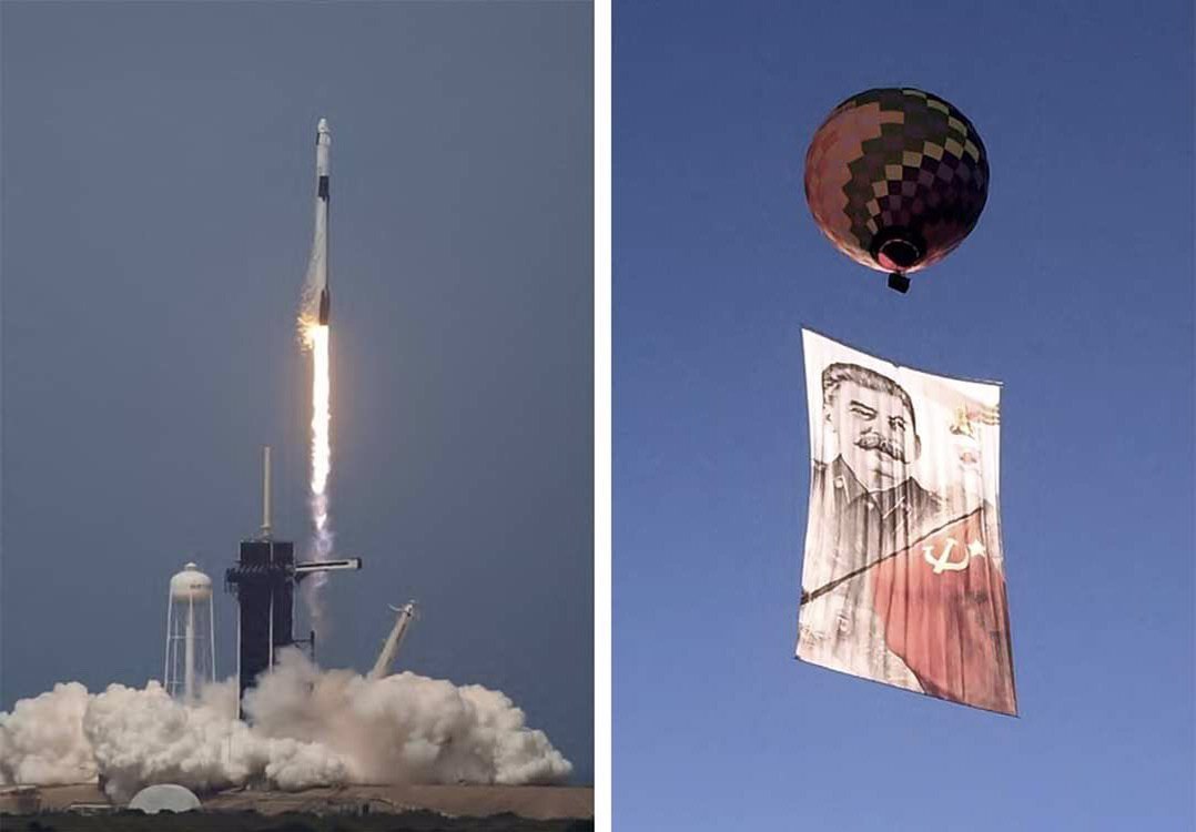 В остелеге сразу несколько человек проехались по сравнению воздушного шара с портретом Сталина над Владикавказом и космического корабля Илона Маска, который доставил космонавтов на МКС.