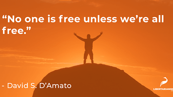 Либертарианство подразумевает принципиальную скромность: нам не следует быть столь ослеплёнными нашими идеалами чтобы силой принудить [привет ГУЛАГ и судебные сроки за hate speach] к ним других людей. Таким образом, важно понимать, что в каком-то смысле либертарианская идея олицетворяет собой отказ от эгоизма. Одно из главных беспокойств либертарианства заключается в том, что некоторые люди будут использовать других в качестве средства для достижения своих целей [лес рубят, щепки летят], что влечет за собой эгоизм самого омерзительного толка. Либертарианцы рассматривают всех и каждого и того парня слева, как важного индивидуума, заслуживающего автономии и достоинства, обладающего правами, которые необходимо защищать от насильственных поползновений. Исторически либертарианство было реакцией на неприкрытый, безответственный эгоизм сильных и власть имущих. Это фундаментально эгалитарная точка зрения, согласно которой все люди равны в том смысле, что совершенно независимо от наших способностей, кожной пигментации, пола и гендера [то же что и пол, но если вы так скажете, вас побьют трансформеры], языка и этнической принадлежности, мы все имеем право быть свободными и преследовать собственные представления о лучшей жизни. Это одновременно радикальная идея и здравый смысл, но это не та идея, которую можно было приравнять к «эгоизму.» Проще говоря: «никто не свободен пока мы все не свободны.»