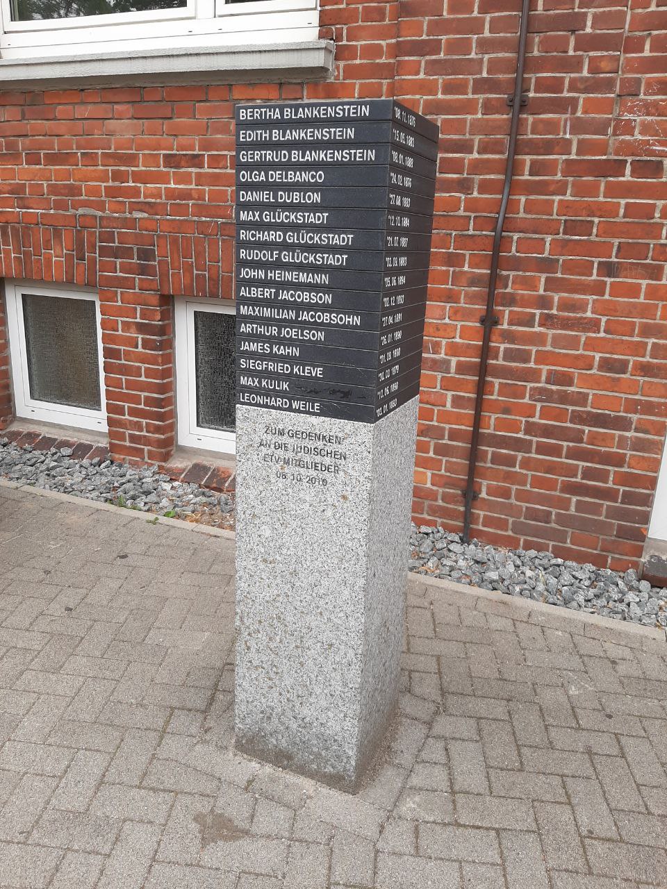 В защиту Eimsbütteler Turnverein стоит добавить, что перед входом у них сейчас находится стелла (фото внизу) с именами членов клуба-евреев, которые погибли в Холокосте, а слева от входа висит огромный плакат против антисемитизма и за восстановление синагоги на Борнплатц. Так что свою позицию по вопросу они формулируют довольно чётко.