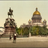 В честь праздника фотография далёкого 1908 года. Петербурженки на Сенатской площади, у Медного всадника.