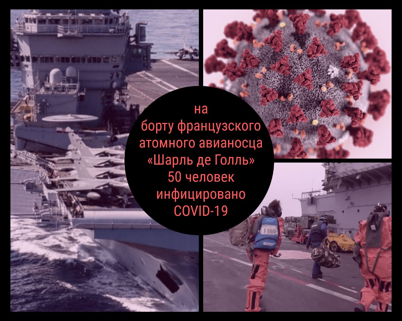 Министерство обороны Франции сообщило, что проведенные тесты COVID-19 на борту атомного авианосца «Шарль де Голль» выявили 50 заболевших.