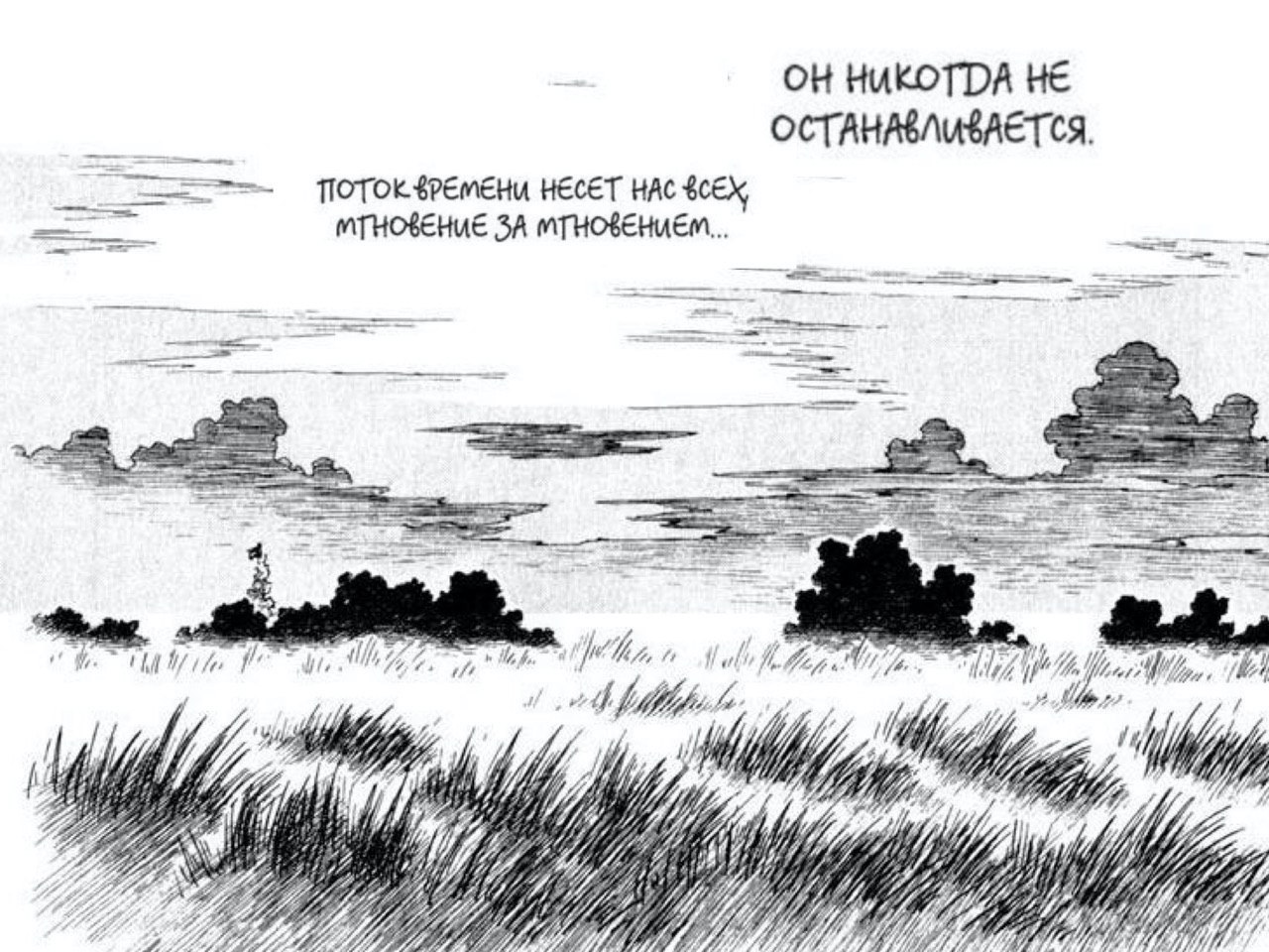 Кстати, картинки, которые я выкладываю с постами, это манга Хитоши Ашинано (Хитоси Асинано, если по Поливанову). Он рисует постапокалипсис и японскую глушь. Очень атмосферно, как мне кажется.