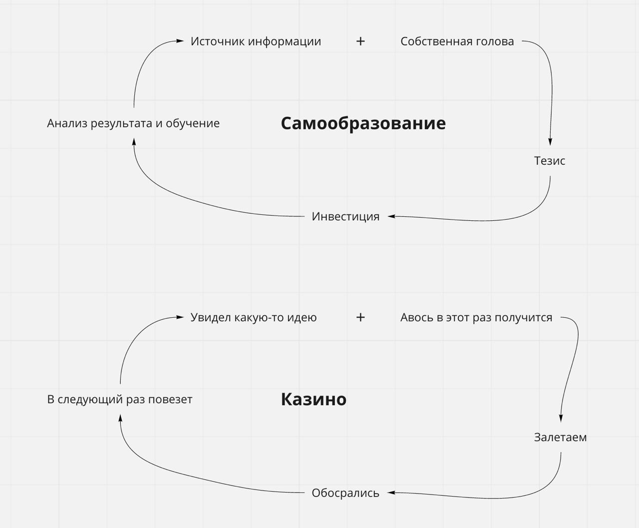 Собственная голова прокачивается постоянным изучением инвестиционных тезисов, проверкой их на практике, фиксированием результата, рефлексией, горючими слезами и так по кругу.