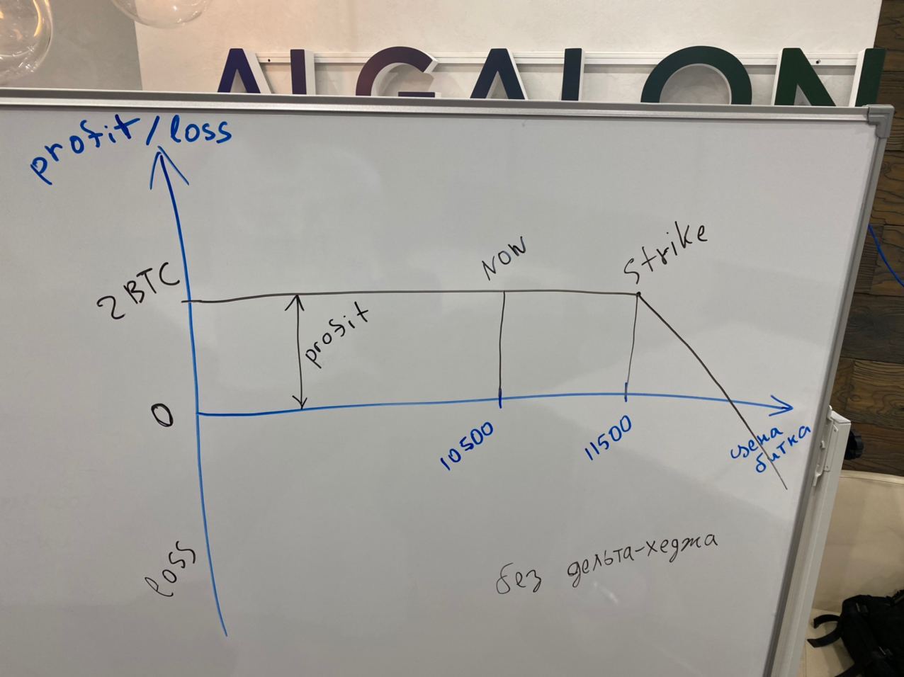 Далее, самое главное. Чтобы в рамках данной стратегии не потерять в битке, нужно хеджировать дельту.