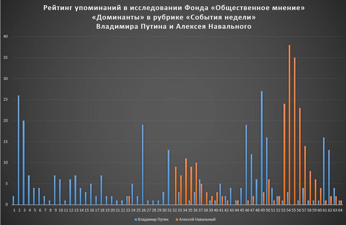 Рассудив, что лучше считать, а уж потом выбирать жевать или говорить решил посчитать упоминание президента Путина и оппозиционера Навального в «Доминантах» ФОМа.