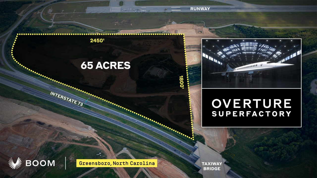 Компания Boom Supersonic, которая занимается разработкой сверхзвукового авиалайнера нового поколения, вчера, 26 января, объявила о том, что выбрала аэропорт Пьемонт-Триад в Гринсборо, Северная Каролина, в качестве площадки для своего первого завода по полномасштабному производству будущего самолета Boom Overture.