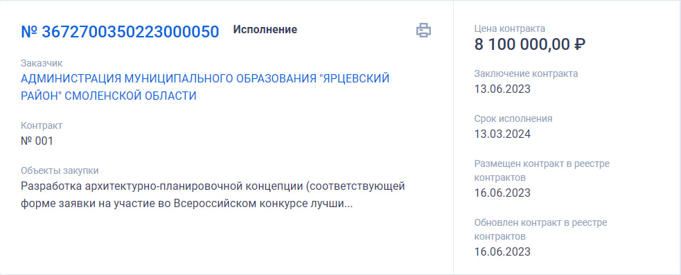 Парк не благоустроят, но деньги потратят. Администрация Ярцевского района заранее подготовилась к поражению в конкурсе лучших проектов создания комфортной среды в малых городах и исторических поселениях. Еще 13 июня глава района Владимир Макаров заключил контракт с ООО "Новая земля" на разработку архитектурно-планировочной концепции и проектно-сметной документации благоустройства парка в Ярцеве. На эти цели в ближайший год потратят 8,1 млн рублей бюджетных средств. Ответственным от администрации за исполнение контракта назначен начальник УЖКХ Олег Глазков.