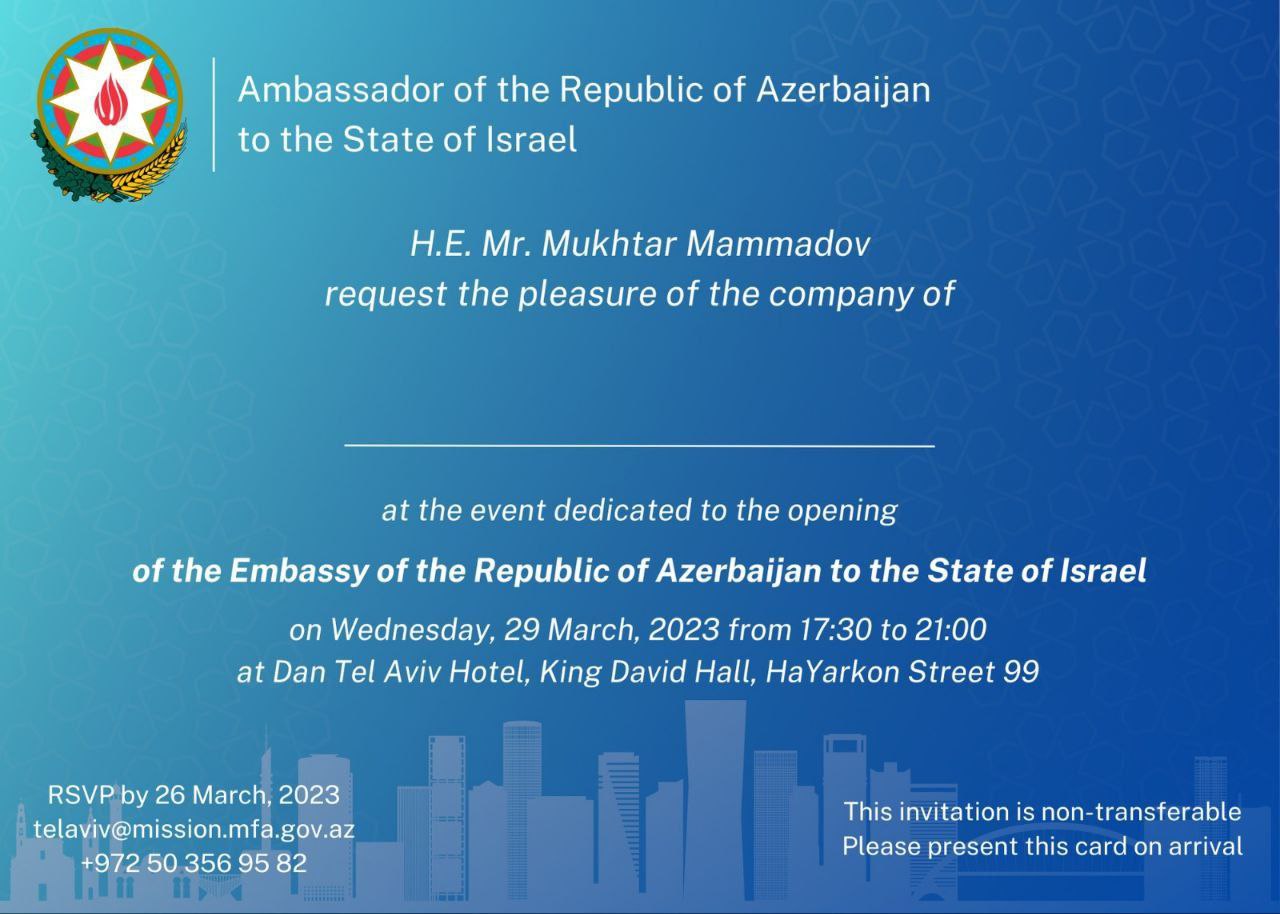 МИД Израиля: «Открытие посольства Азербайджана обозначает новую эпоху в двусторонних отношениях… тёплые отношения стратегического характера достигают в эти дни пика с открытием посольства…».