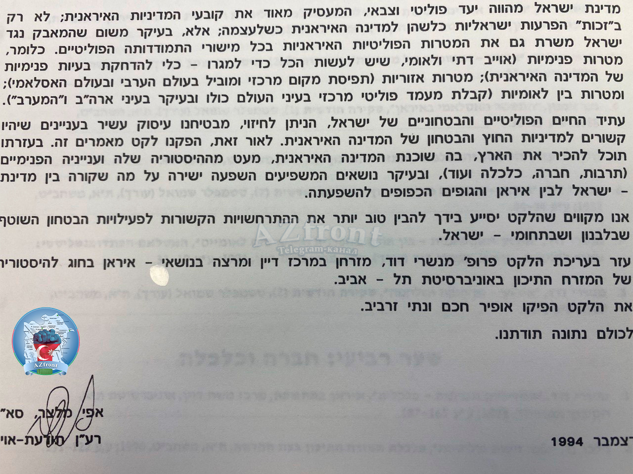 Сканы из секретного документа военной разведки Израиля, который выявляет перспективное направление для иностранных спецслужб в борьбе с Ираном.