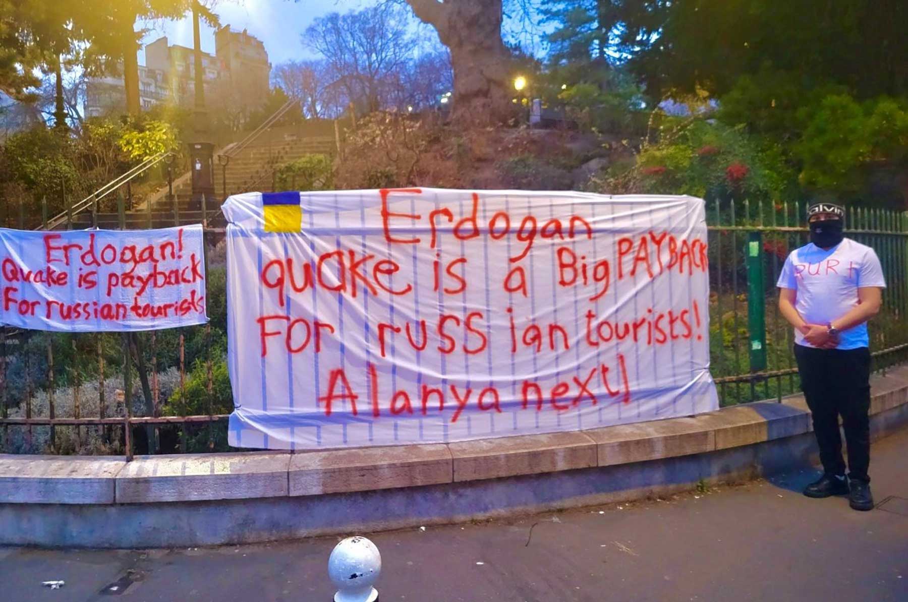 Помимо антитурецких акций проводились и антиукраинские. «Досье» и его партнеры выяснили, что с декабря 2022 г. в Париже, Гааге, Мадриде и Брюсселе были проведены 10 антиукраинских акций. Нередко мероприятия проходили посреди крупных демонстраций.