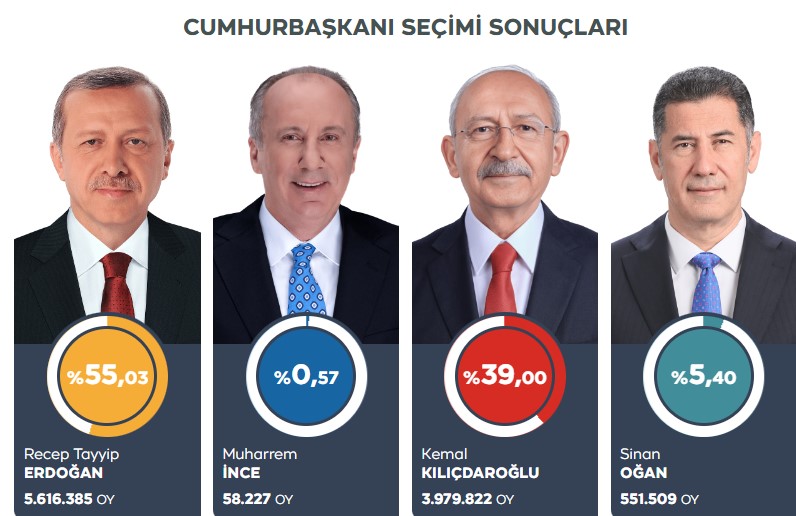 ▪️ Эрдоган - 55,03%;