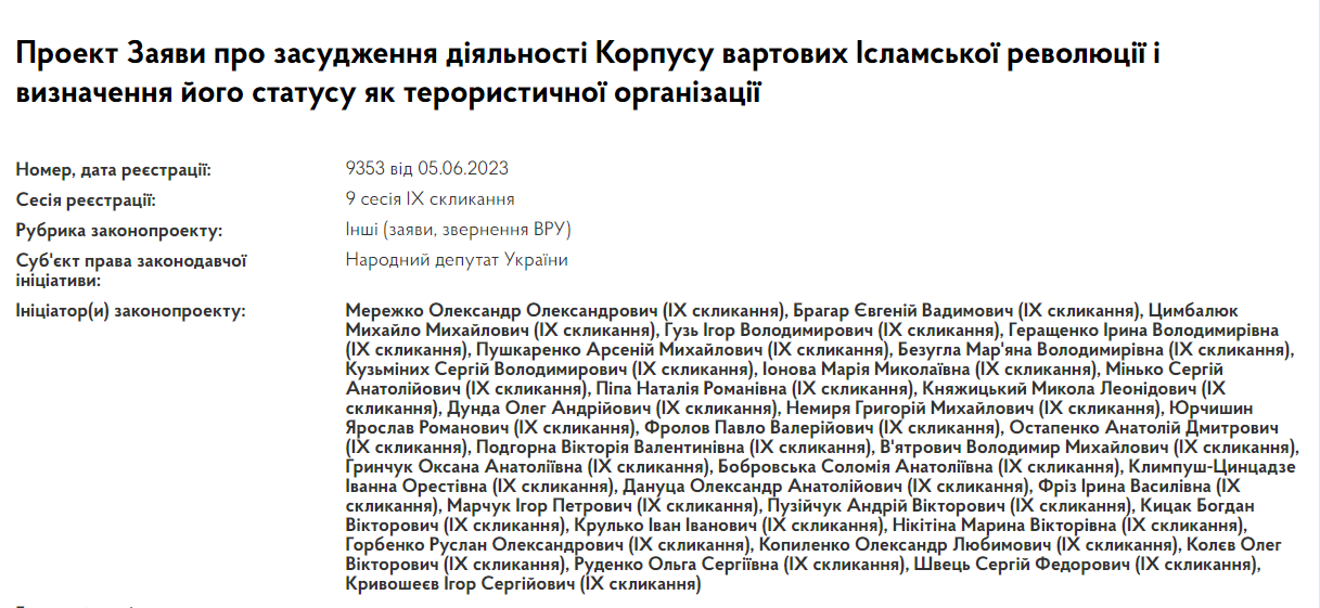 🇮🇷🇺🇦 Украина может признать иранский Корпус стражей Исламской революции (КСИР) террористической организацией. Законопроект находится на рассмотрении Верховной Рады.
