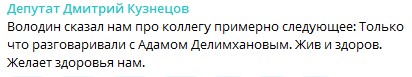 До этого Кадыров заявил, что не может связаться со своим соратником. Несмотря на это, в Госдуме РФ заявили, что вышли на связь с депутатом Делимхановым и он жив.