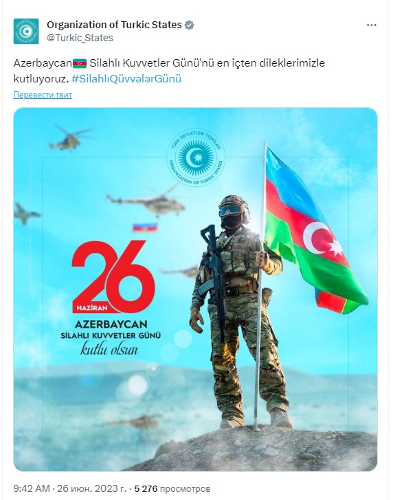 Организация тюркских государств (ОТГ) поздравила Азербайджан с Днем вооруженных сил.