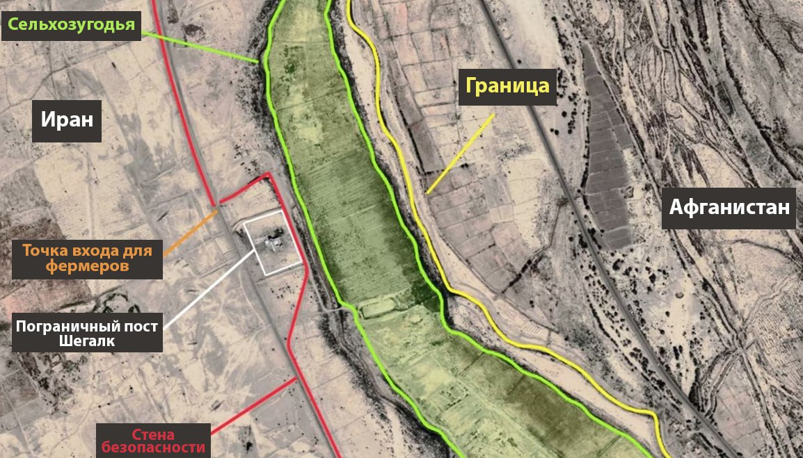 Стена безопасности протяженностью 130 км, построенная Ираном на удалении от демаркационной линии границы с Афганистаном отрезала иранским фермерам доступ к 1000 га сельскохозяйственных угодий, расположенных между ней и официальной границей. Талибы считают, что граница между двумя странами соответствует стене и во многих случаях изгоняли иранских фермеров с этой территории (Iran International).