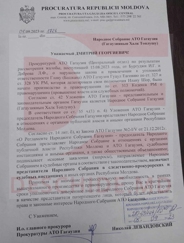 Прокуроры отправили запрос в Народное собрание Гагаузии (НСГ) с предложением направить своего человека для представления интересов НСГ в процессе против главы автономии.