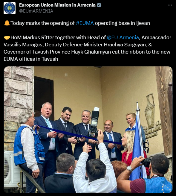 🇪🇺🇦🇲🇦🇿 В городе Иджеван на северо-востоке Армении, близ границы с Товузским районом Азербайджана, открылась очередная оперативная база гражданской миссии ЕС.