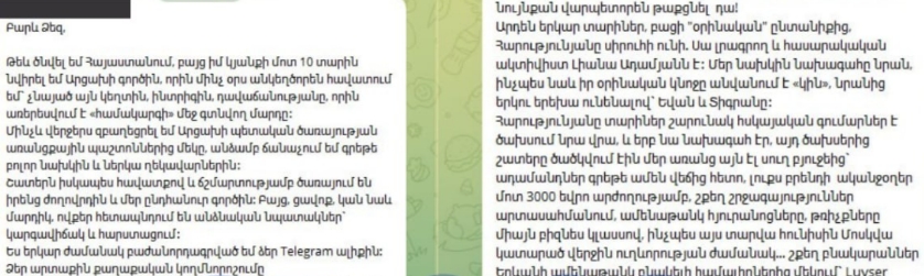 В ближайшие часы, с подачи компетентных органов Украины, будут оглашены дополнительные детали о признаниях бывшего близкого соратника «экс-президента» сепаратистов в Карабахе Арутюняна. 9 сентября в армяноязычных ТГ-каналах было распространено письмо со следующим содержанием (публикуем с сокращениями):