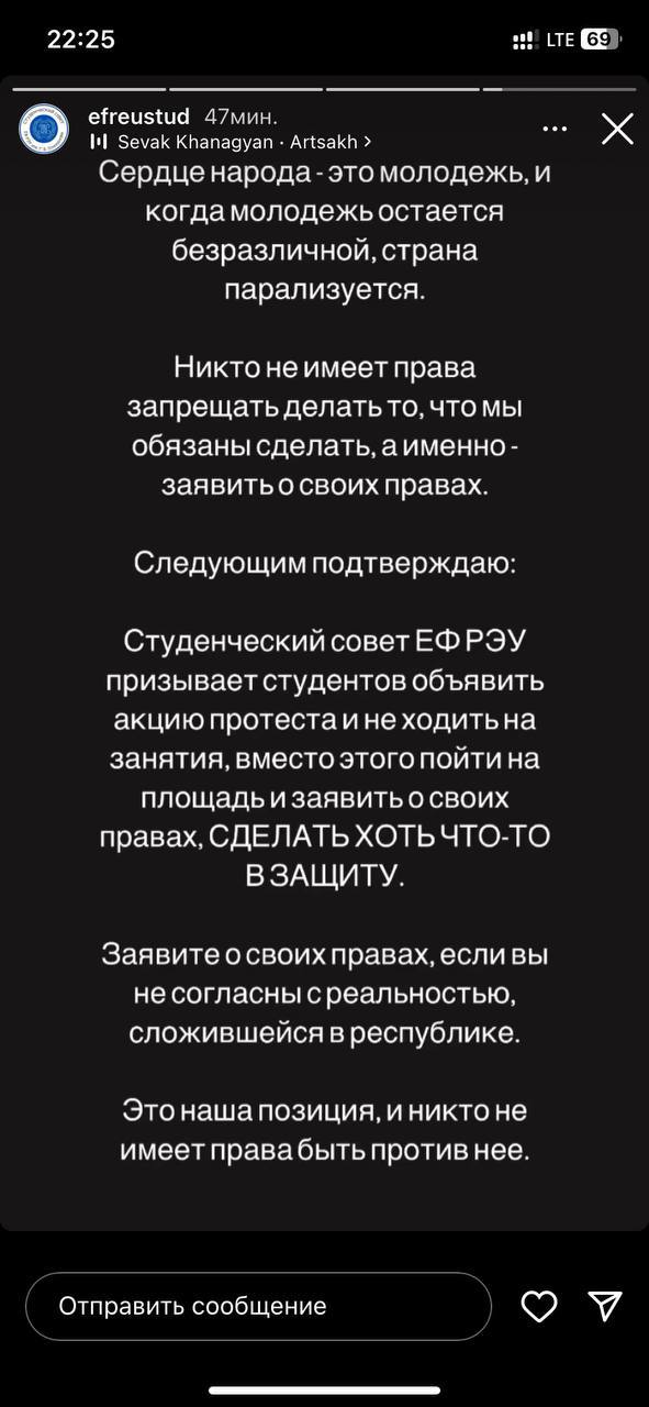 🇦🇲 Ереванские университеты пропагандируют свержение власти и призывают студентов идти на митинг. В Ереванском экономическом университете агитацией занимается экс-глава студсовета. Есть сообщения, что студенты и ученики некоторых школ поддаются агитации и вместо занятий собираются на митинг.