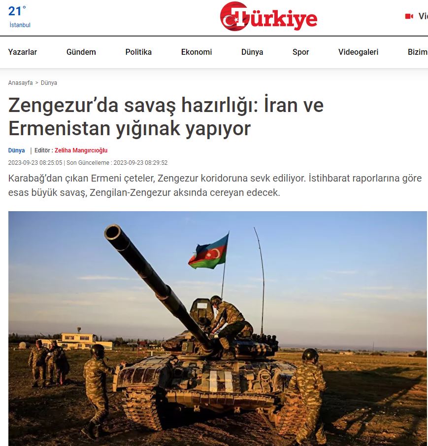 Türkiye Gazetesi: Иран и Армения готовятся к войне в Зангезуре