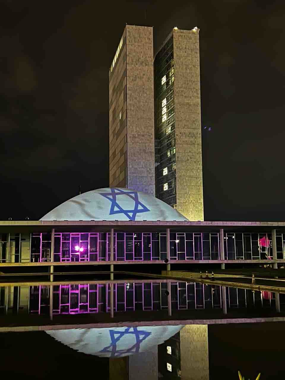 Здание конгресса Бразилии освещено цветами флага Израиля в знак поддержки (Abu Ali Express).