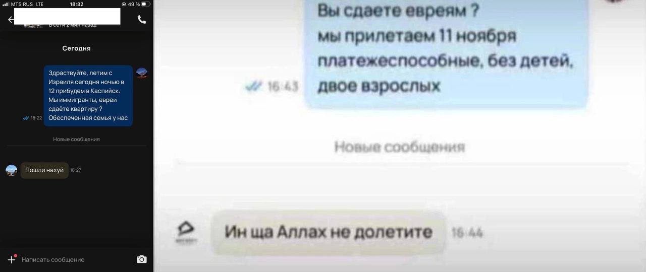 Один из крупнейших ТГ-каналов BRIEF сообщает, что незадолго до начала беспорядков в Махачкалинском аэропорту, местным жителям стали приходить однотипные запросы на сдачу жилья гражданам Израиля, возможно с целью провокации.
