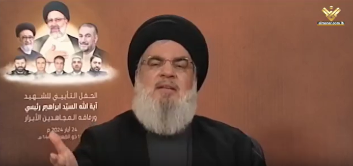 «Израиль должен ожидать сюрпризов от Хизбаллы... Мы изучили все ваши шаги», - заявил лидер Хизбаллы Насралла в своей речи, посвященной смерти президента Ирана Раиси (ливанский телеканал Al-Manar).