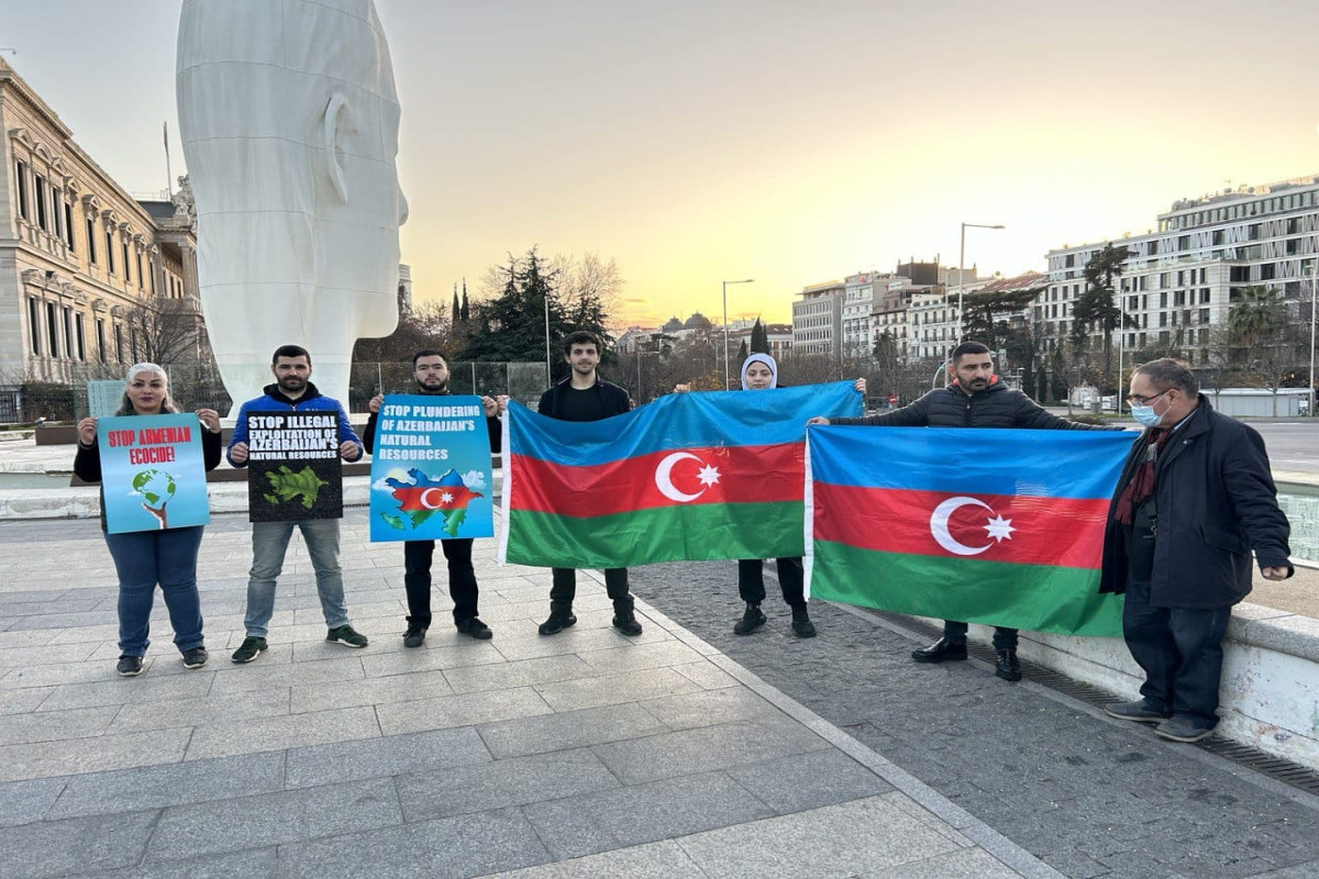 🇦🇿 На площади Колумба в Мадриде прошла мирная акция протеста против незаконной эксплуатации месторождений полезных ископаемых на территории Азербайджана. Участники продемонстрировали солидарность с азербайджанскими эко-активистами, которые уже 21 дней проводят акцию на Лачинской дороге в Шуше и потребовали прекращения незаконной деятельности армянских сепаратистов в Карабахе (APA).