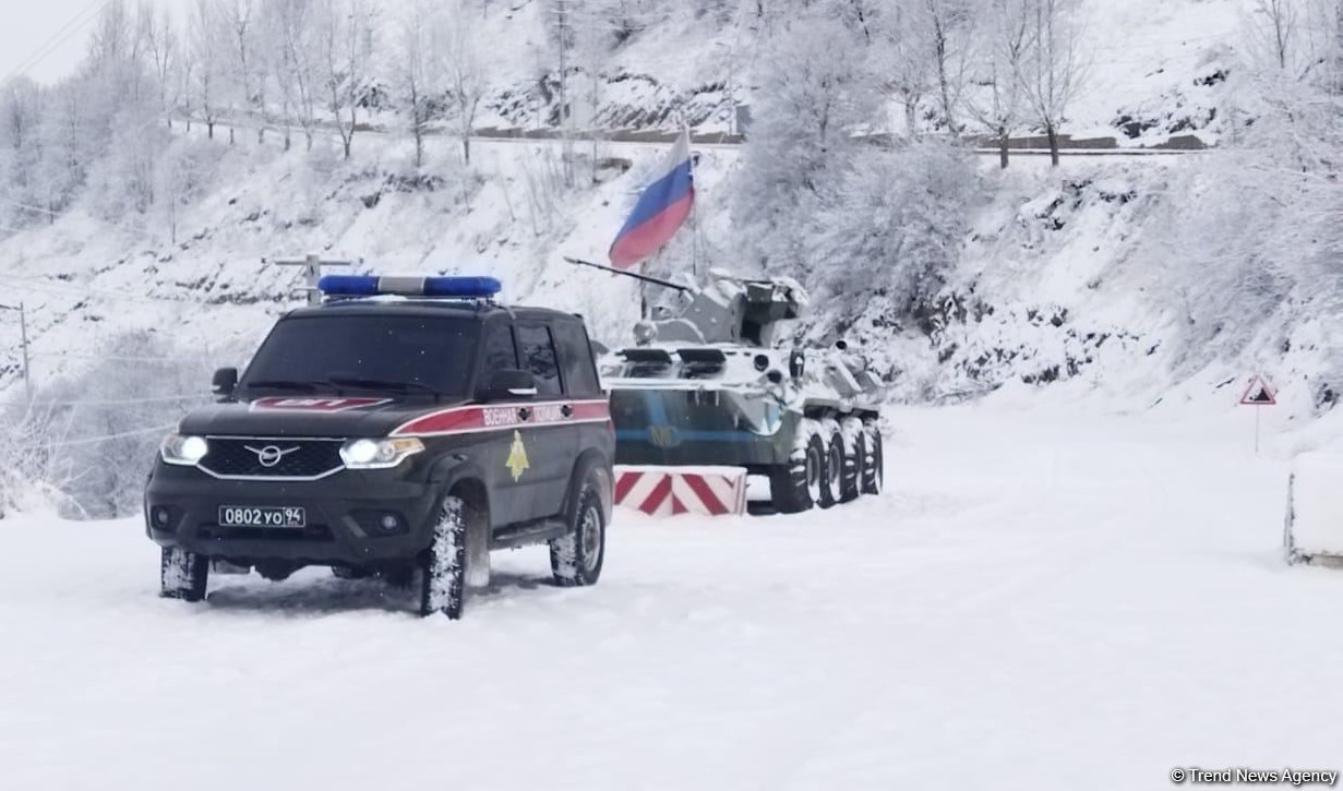 🇦🇿 На дороге Ханкенди-Лачин, проходящей через Шушу, где проходит акция азербайджанцев, вновь созданы условия для движения 2-х легковых автомобилей военного контингента РФ (Trend).