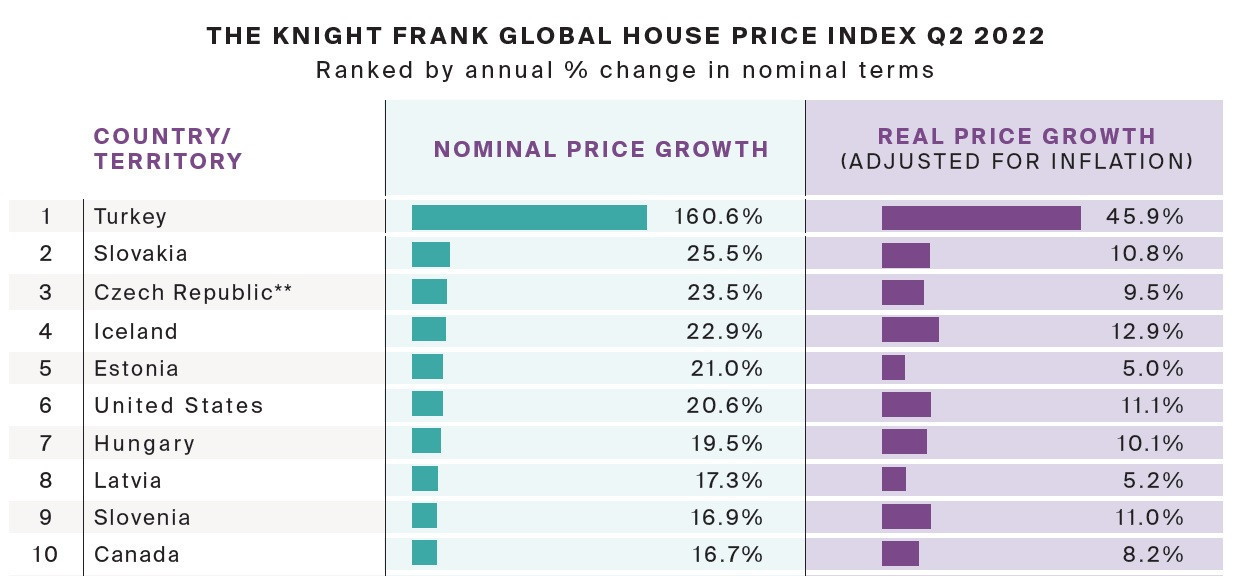 🇹🇷 Согласно отчету британской консалтинговой компании по недвижимости Knight Frank, Турция заняла первое место среди 56 стран по росту цен на аренду жилья в 2022 г. Цены выросли на 160,6% в сравнении с предыдущим годом.