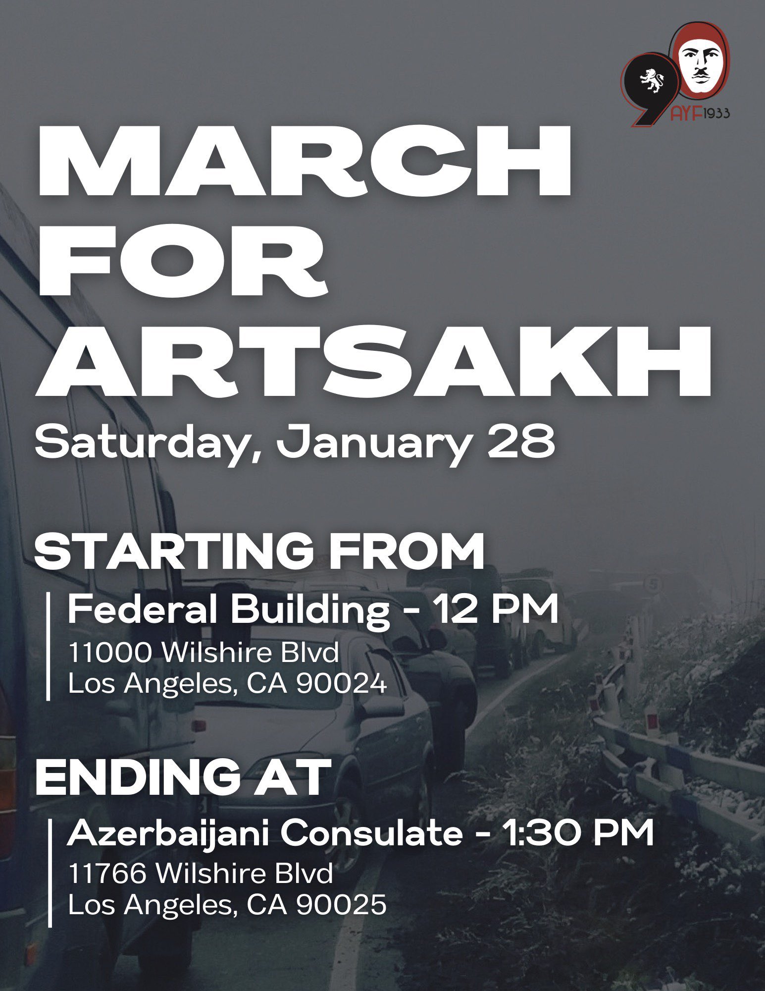 29 января в Лос-Анджелесе в полночь по бакинскому времени филиал молодежного крыла Дашнакцутюн (Армянская революционная федерация) на западе США Армянская молодежная федерация (AYF West) организует марш к консульству Азербайджана в поддержку армянского сепаратистского анклава в Карабахе (Twitter-аккаунт AYF West).