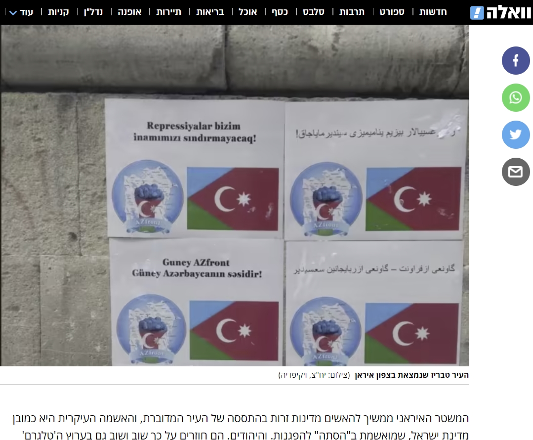 Центральные СМИ Израиля освещают акции подписчиков AZfront в Тебризе