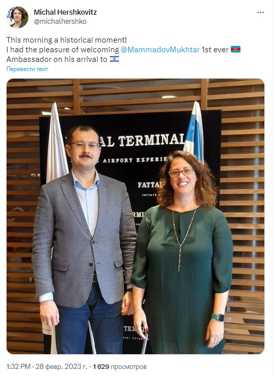 🇦🇿🇮🇱 Первый посол Азербайджана в Израиле Мамедов прибыл в страну своего назначения (Twitter-аккаунт представителя МИД Израиля).