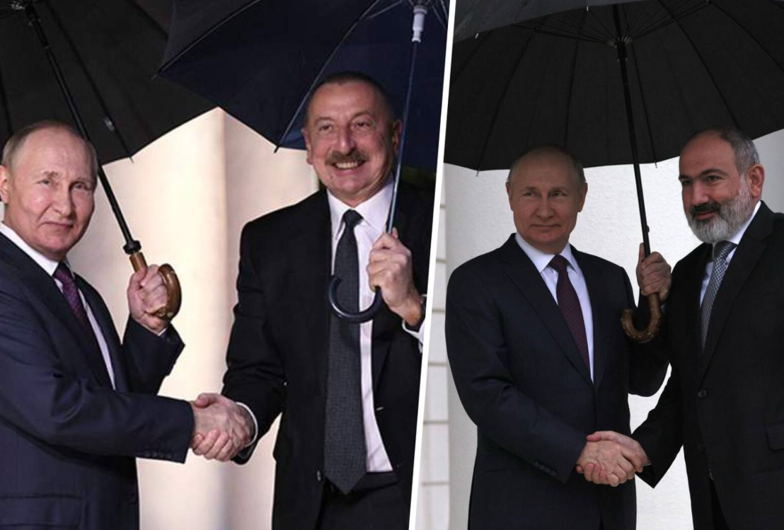 Говорят, что изображение стоит тысячи слов. В нашем случае две фотографии стоят учебника по новейшей истории Южного Кавказа, материалов политологической конференции и научной статьи о поведении подростков. Казалось бы, всего лишь зонтики, а сколько символизма: Алиев прикрывает себя сам, Пашинян тулится под зонтик Путину. Так ведут себя 16-летние девушки, дабы примоститься поближе к нравящемуся им парню. Так лезут под защиту старшего зарвавшиеся тинейджеры, которые опасаются получить пи... (извините) физическое воздействие, направленное на коррекцию их поведенческих реакций.