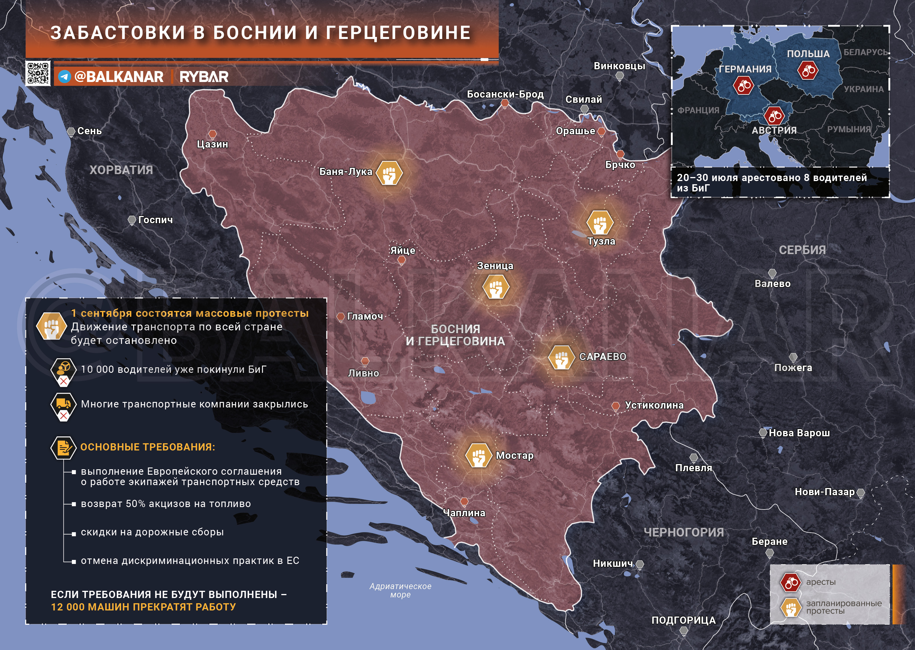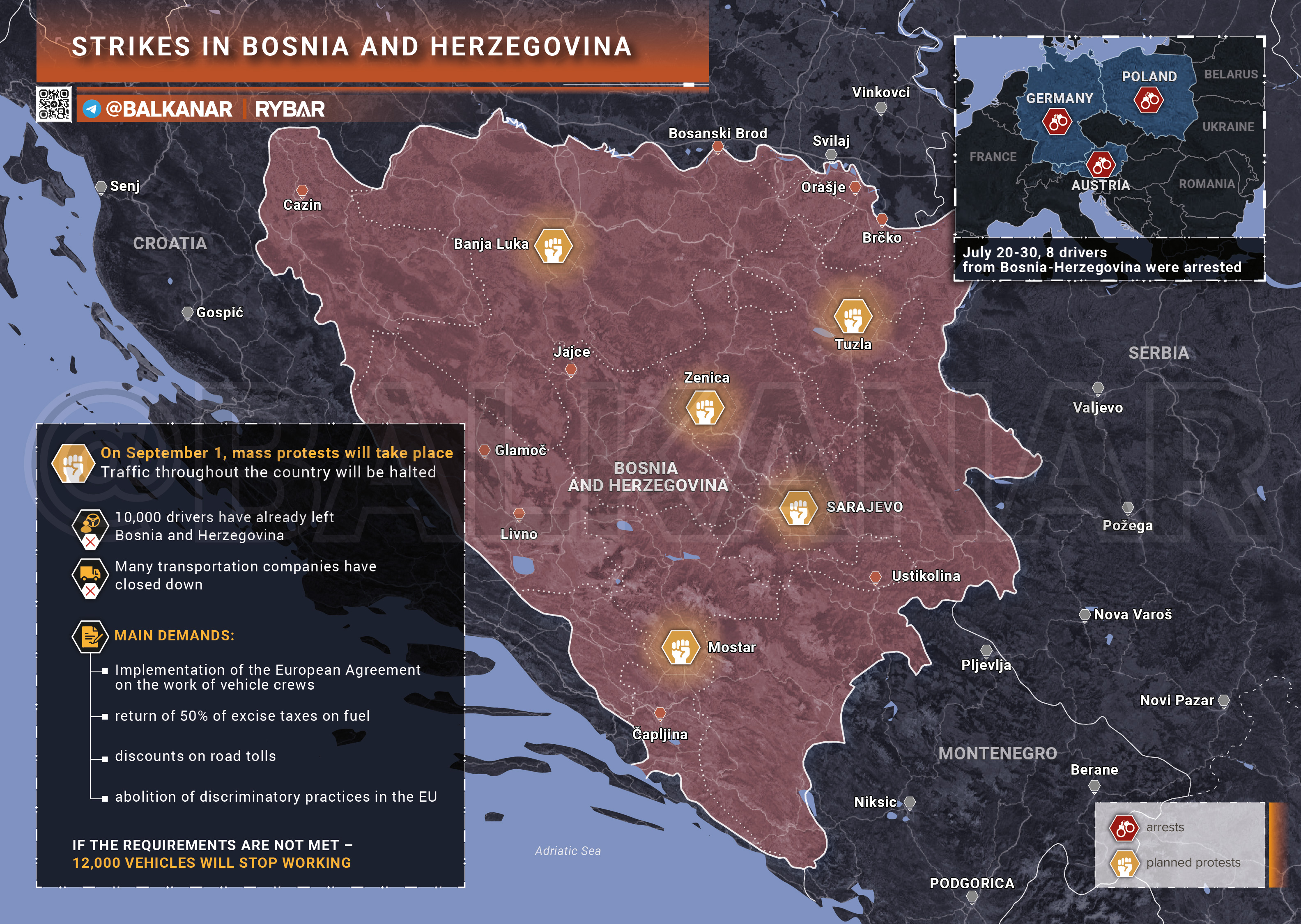 1 сентября перевозчики из Боснии и Герцеговины проведут массовые акции протеста и остановят движение транспорта по всей стране.
