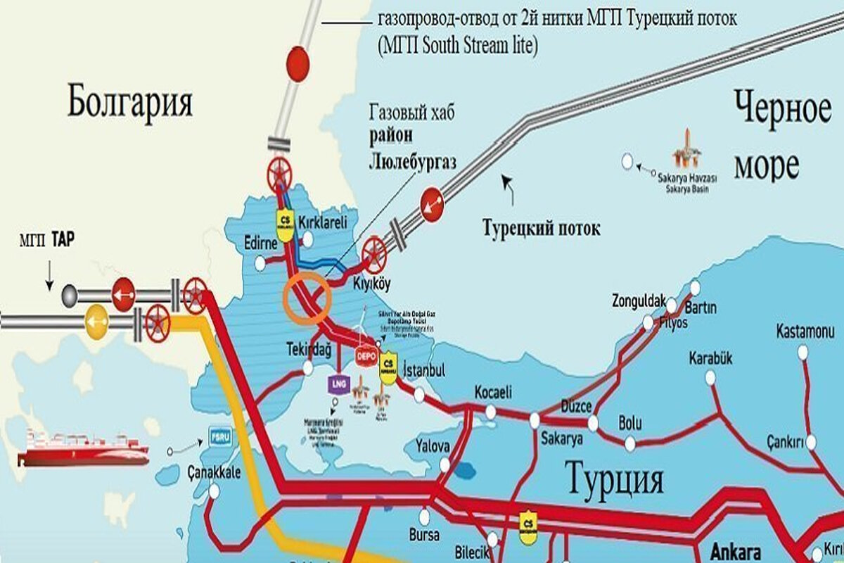 Предполагается разместить этот хаб в турецком регионе Фракия, в европейской части страны, в месте выхода нитка газопровода "Турецкий поток". А уже оттуда российский природный газ, будет направляться по 3 ниткам: