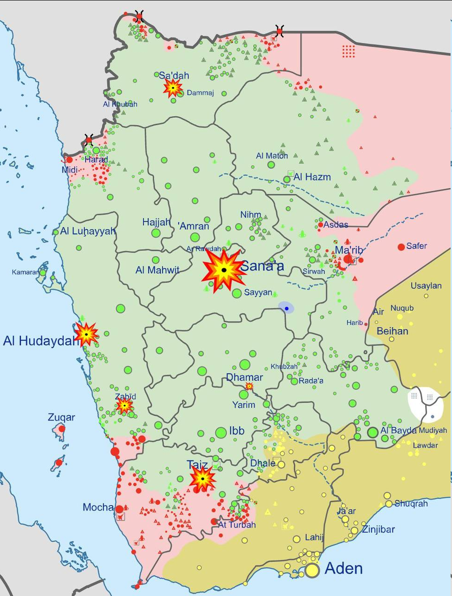 Сегодня ночью американцы таки отреагировали на йеменские провокации и ударили по позициям хуситов. Согласно информации Пентагона, четыре авиаудара нанесены по военно-воздушной базе в районе международного аэропорта Саны, столицы Йемена. Пять авиаударов пришлось на объекты хуситов к востоку от Ходейды. Аэропорт Ходейды подвергся восьми авиаударам. Удары также были нанесены по целям в самом городе, который находится на побережье Красного моря на западе страны, и по окрестностям порта. Кроме того, бомбардировке подвергся город Таиз в центральной части Йемена, ещё два авиаудара были по военному лагерю восточнее города Саада на севере.