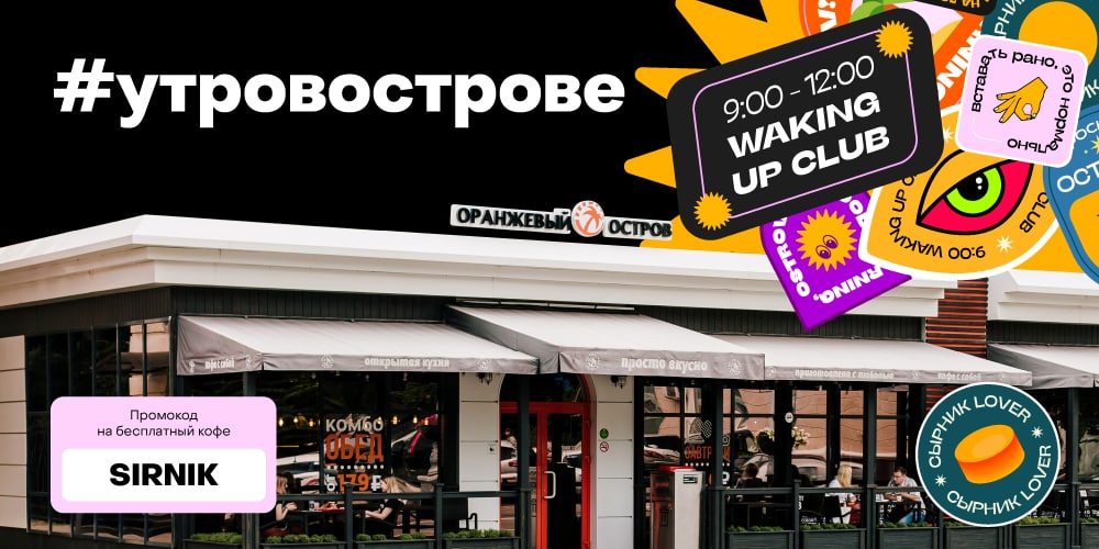 И вот бонус для всех — по кодовому слову SIRNIK вам нальют бесплатный кофе при покупке любого завтрака :)