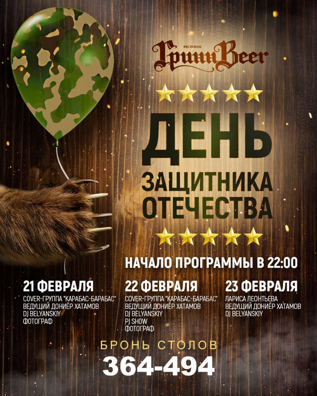 В эти выходные Россия будет отмечать самый мужской праздник. Берите друзей, подруг и все в «ГриннBeer» 💪