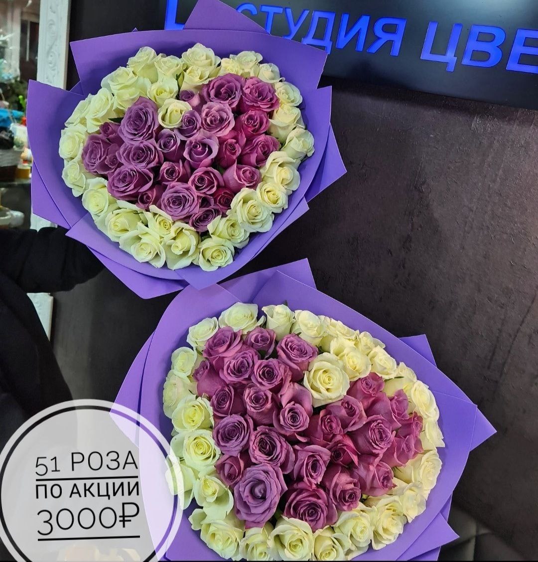 Тем более, что в салоне цветов «Каталея» уже классные акции. 51 роза за 3 000 рублей, доставка — 200 рублей, самовывоз с улицы Никиты Лихарева, 17 ❤️