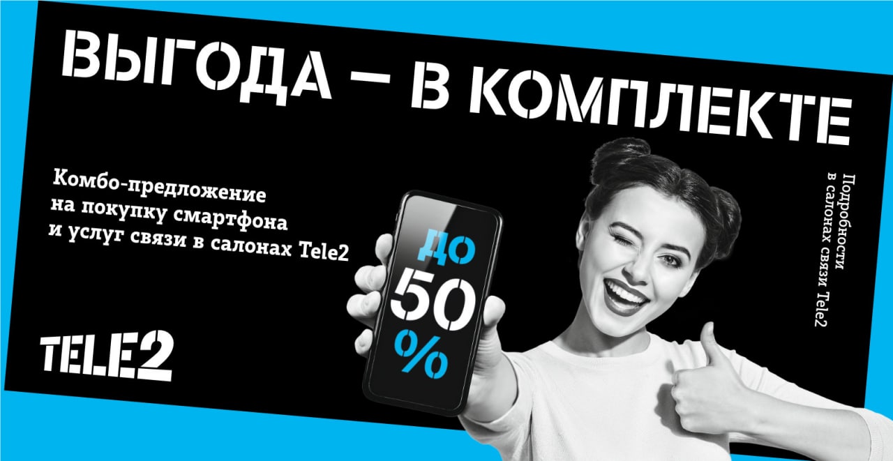 До 31 декабря 2021 года в салонах Tele2 можно получить скидку до 50% на второй смартфон в чеке при одновременном подключении к Tele2 на тарифы «Мой онлайн +» и «Везде онлайн» с оплатой комплекта подключения на 3 месяца и приобретением страховой услуги.