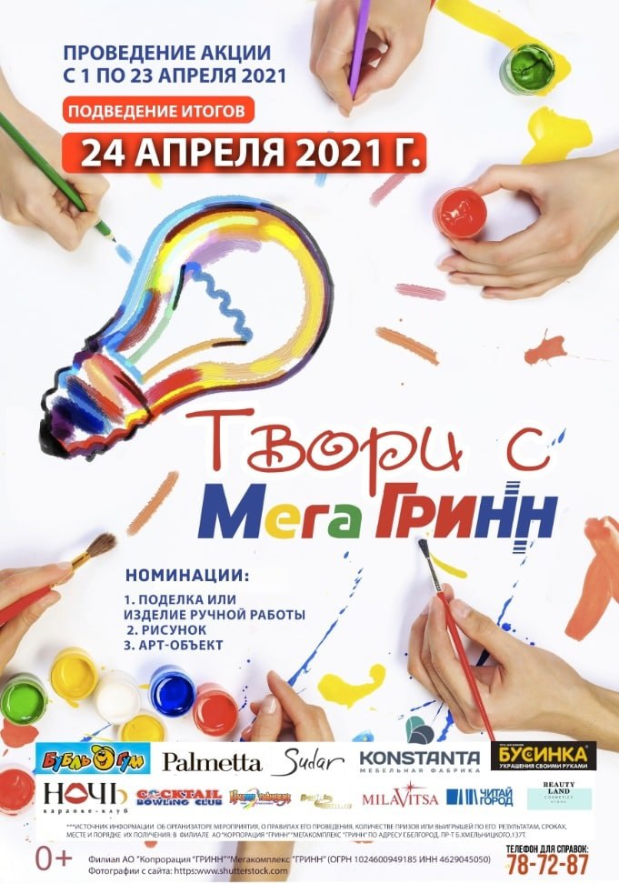 До 23 апреля проходит конкурс «Твори с МегаГРИНН», где выберут аж девять победителей, а все работы (в том числе и вашу) разместят на выставке прямо в торговом центре. Все условия конкурса — по ссылке.